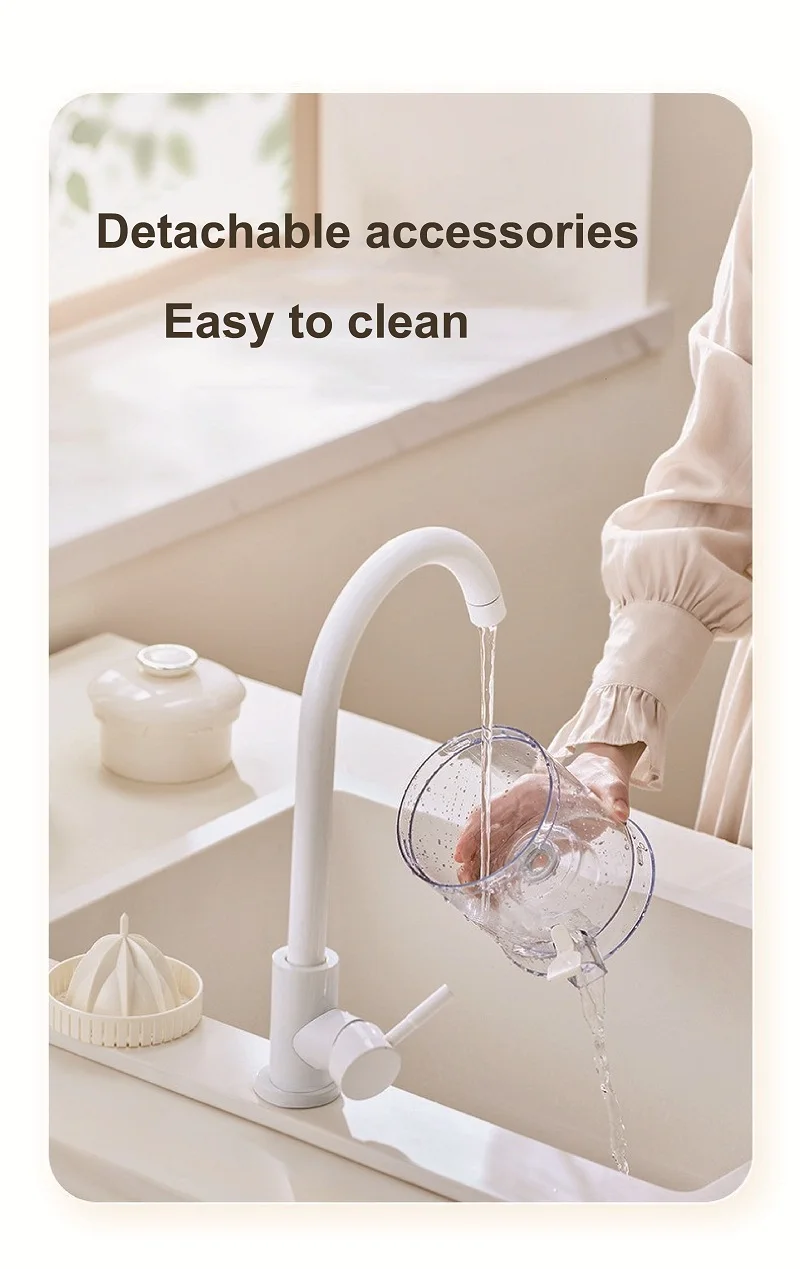 La taille est très compacte et portable. Il ne prend pas de place. Vous pouvez déguster des jus nutritifs à tout moment de la journée.