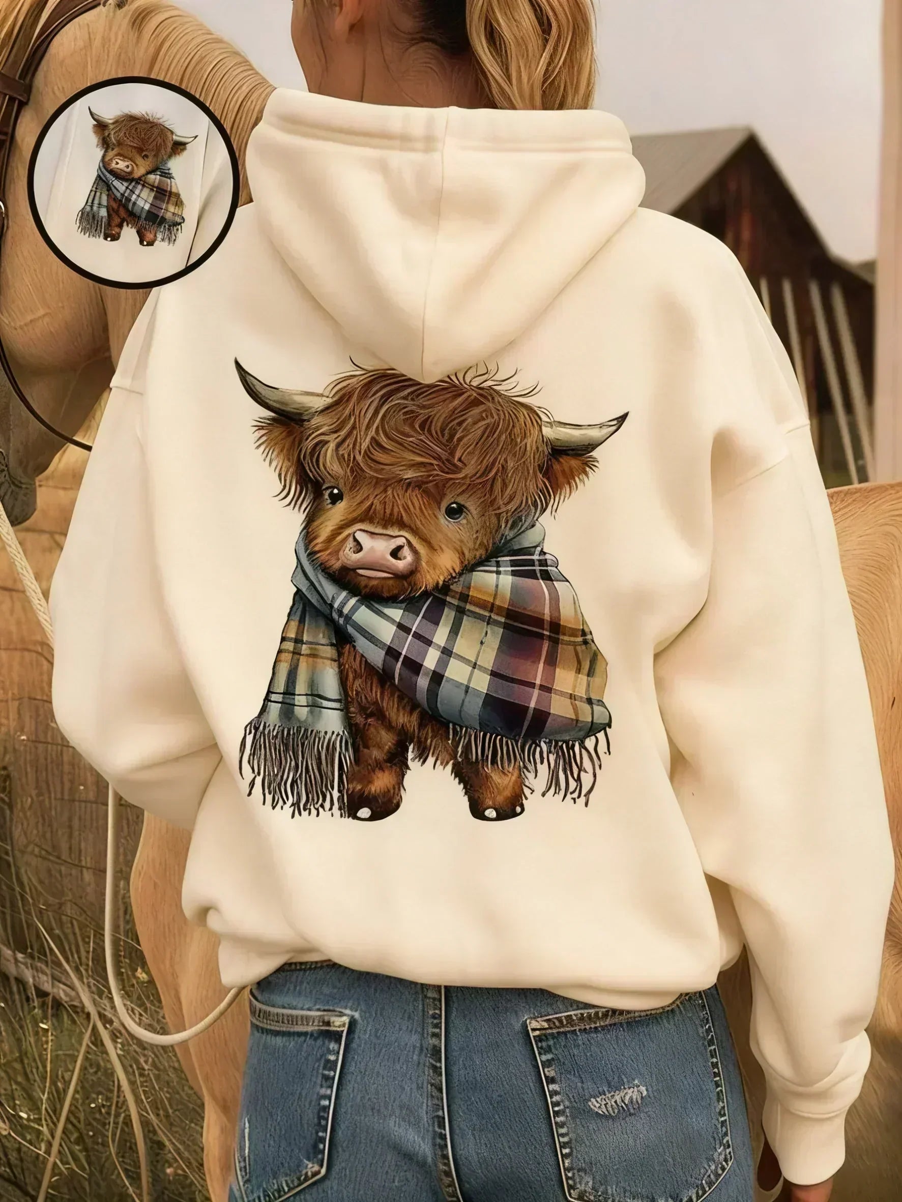 💖DERNIER JOUR DE VENTE ! 60 % DE RÉDUCTION !🎁 Joli sweat à capuche doublé en polaire avec un motif de vache des Highlands.🦬